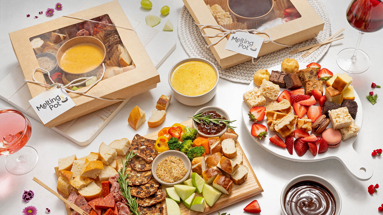 Grab a Fondue Party Box or two, unbox, and dip in – in the comfort of your own home.